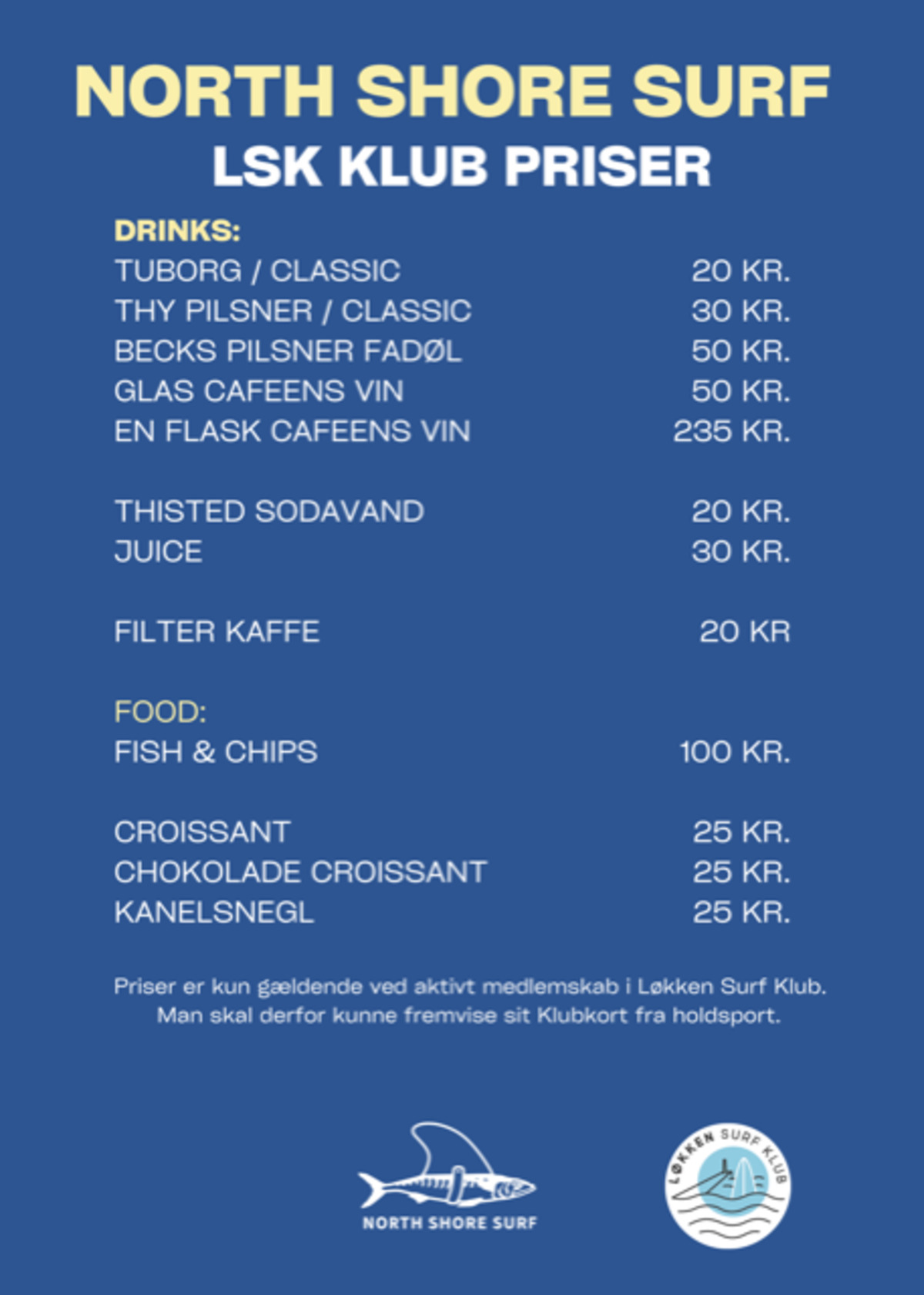 Du skal fremvise din Løkken Surf Klub Holdsport app på forlangende for at få glæde af medlemsfordelene.
